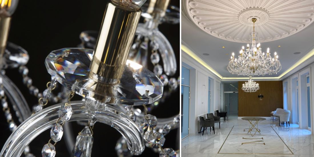Przedstawiamy jeden z naszych pięknych projektów: ekskluzywne wnętrze prestiżowej kliniki medycyny estetycznej w Budapeszcie, gdzie dostarczyliśmy i zainstalowaliśmy dwa kryształowe żyrandole. Zobacz, jak te żyrandole znacząco przyczyniają się do luksusowej atmosfery całej przestrzeni.