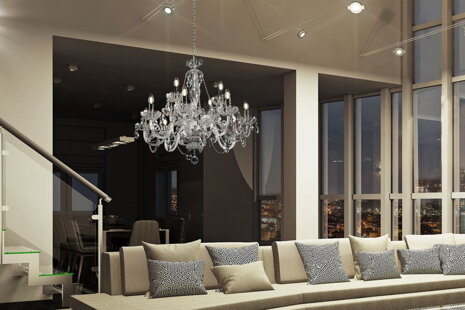 Po wybraniu odpowiedniego kryształowego żyrandola należy zastanowić się nad jego umiejscowieniem. Idealnym miejscem do zawieszenia żyrandola jest środek pomieszczenia (lub nad stołem), tak aby światło było równomiernie rozproszone w całej przestrzeni. Jeśli masz wielopoziomowe wnętrze lub otwartą przestrzeń w domu, możesz spróbować zawiesić żyrandol na wyższym piętrze - stamtąd pięknie oświetli całą przestrzeń i stanie się dominującym elementem wnętrza.