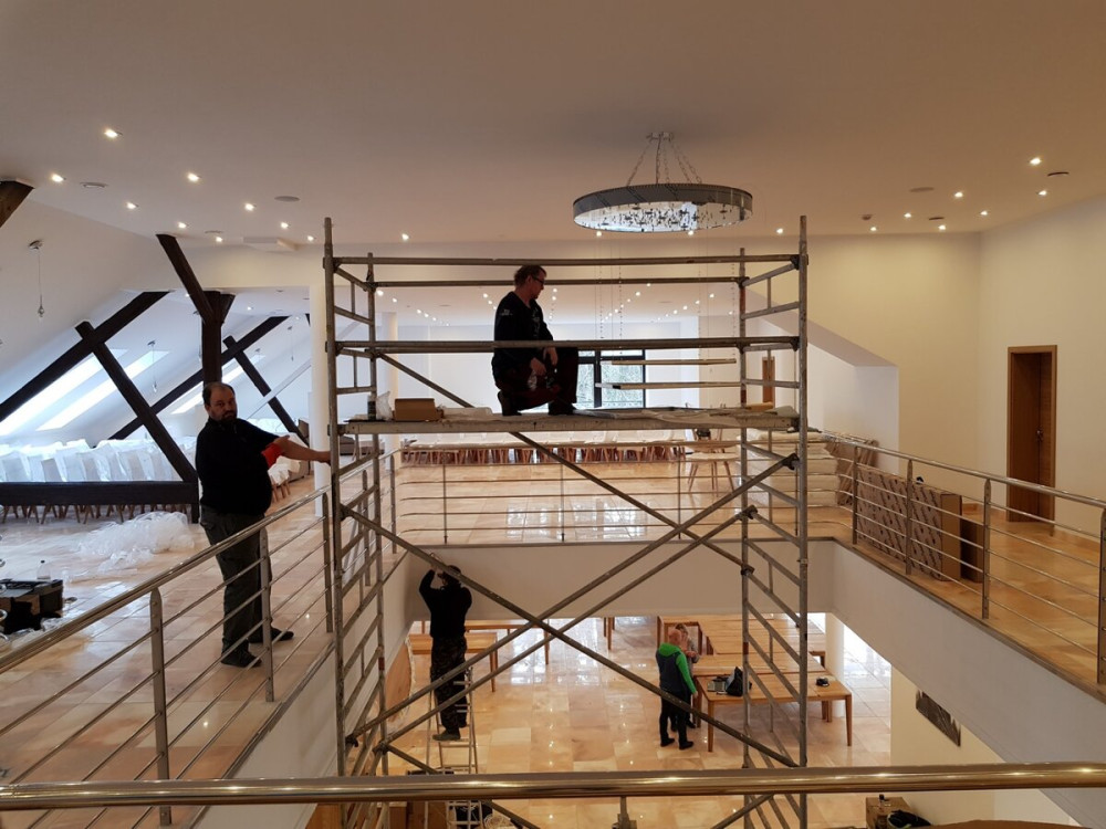 Nowo zrekonstruowana restauracja i pensjonat Na Sklepích znajduje się w królewskim mieście Chrudim w Kraju Pardubickim. Goście mogą korzystać z pięknych pokoi, apartamentów rodzinnych lub weselnych. W tym luksusowym pensjonacie zainstalowaliśmy wykonane na zamówienie lampy sufitowe do restauracji. Zainstalowaliśmy również oprawę oświetleniową "kryształowy deszcz" w holu na pierwszym piętrze pensjonatu. Efekt końcowy okazał się wspaniały.