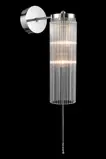 Nowoczesny kinkiet ma prosty, ale efektowny design. Długie, ręcznie wycinane szklane rurki, przymocowane do polerowanej mosiężnej konstrukcji, ciekawie rozpraszają światło żarówek. Lampa pięknie komponuje się z żyrandolem o tym samym wzorze.